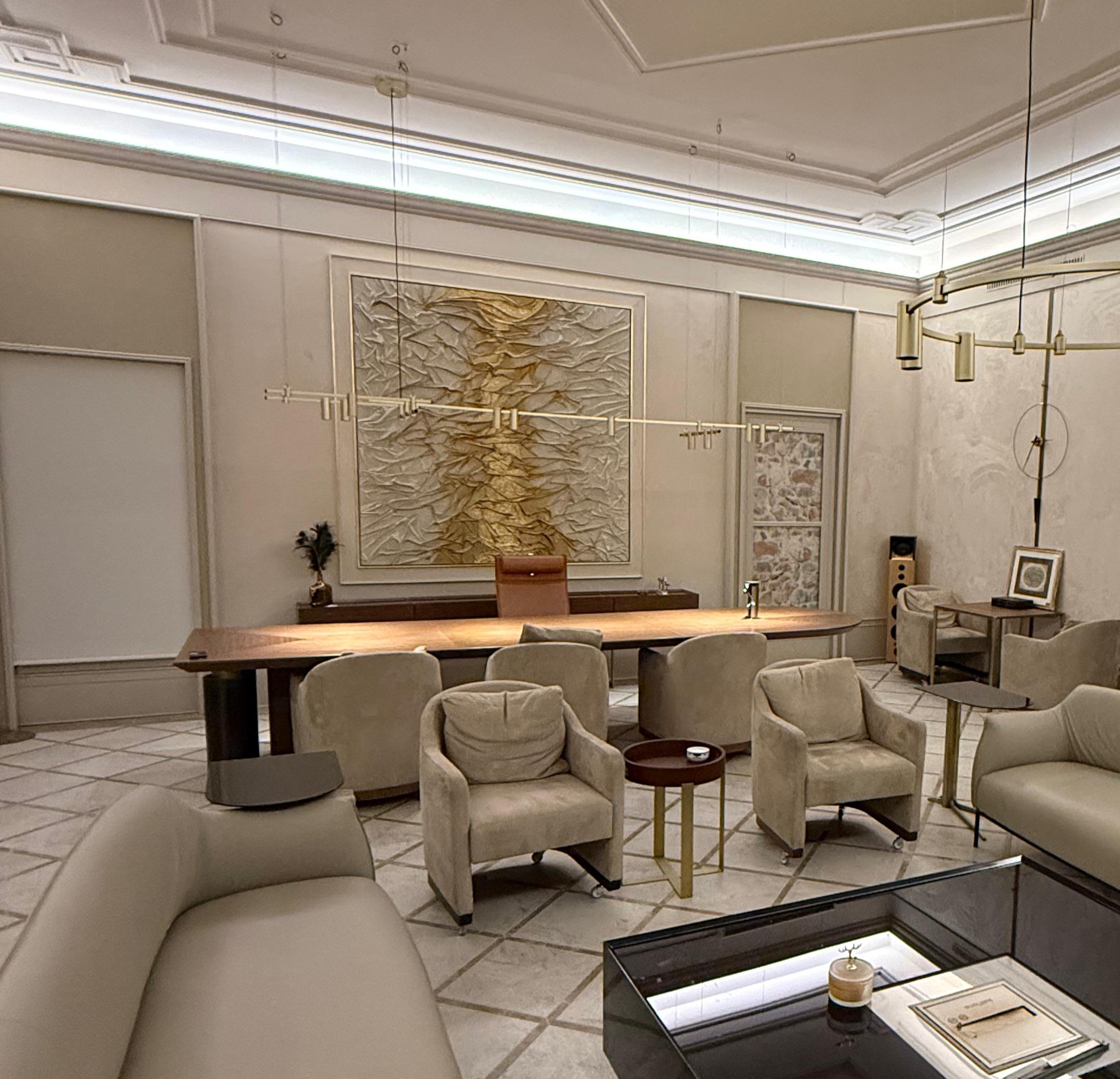Zamana karşı ölçülü bir duruş, sadelik içinde belirgin bir güç ve dengeli bir estetik yaklaşım; eserlerin katmanlı ve kontrollü yüzey diliyle doğal bir uyum içindedir.